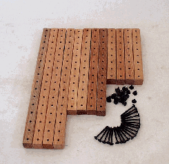 QuikStix are 1.5 x 1.5 inch beams manufactured from high quality Douglas Fir, a strong yet light wood. Each stick has a repeating hole pattern drilled on all four sides. Except for the various lengths, every Quikstix beam is identical. This dramatically simplifies projects by keeping the number of specialized pieces to a minimum. The hole pattern provides connection points which allow you to create thousands of useful projects when you need them.